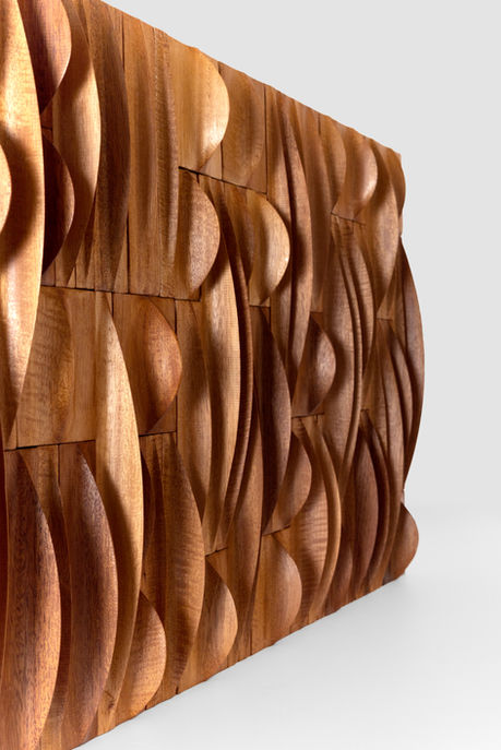 Los mosaicos que forman los paneles de Noolii crean patrones únicos. Estos se fijan sobre un bastidor estructural de caoba de 2” de grosor. Cada panel tiene una base firme y estable y se entrega listo para su instalación. Nuestros paneles están disponibles en medidas estándar de 60 x 90 cm, así como en dimensiones personalizadas a partir de 40 × 40 cm.