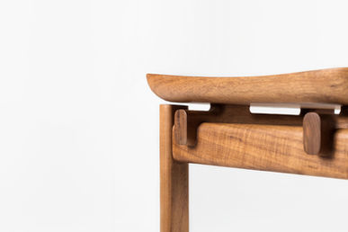 El diseño de la Silla Muna se caracteriza por líneas suaves y bordes redondeados, combinados con una construcción firme y ligera que resalta los ensambles de madera mediante técnicas de ebanistería tradicional. Su respaldo y asiento, al estar hechos a mano, se distinguen por su forma escultural. La meticulosa atención al detalle en su elaboración, junto con la alta calidad de los materiales, la convierten en una pieza excepcional.